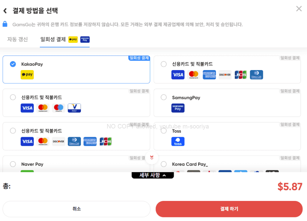 이제 결제하기 버튼을 눌러주시면 됩니다.
