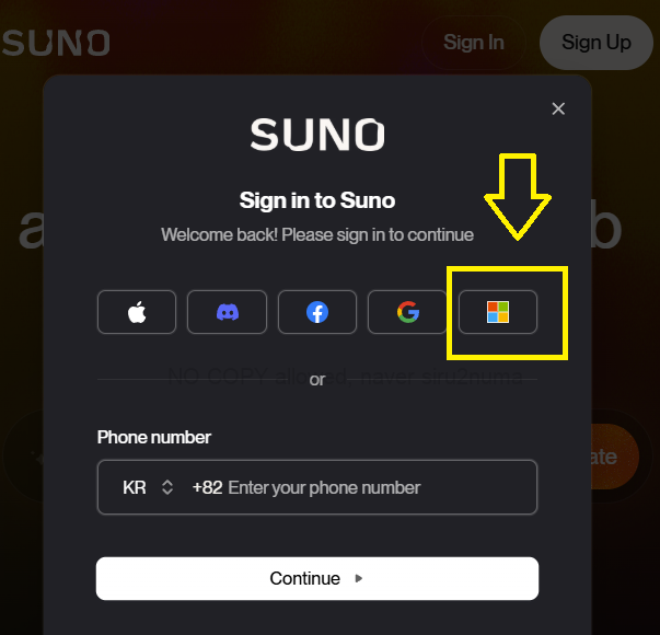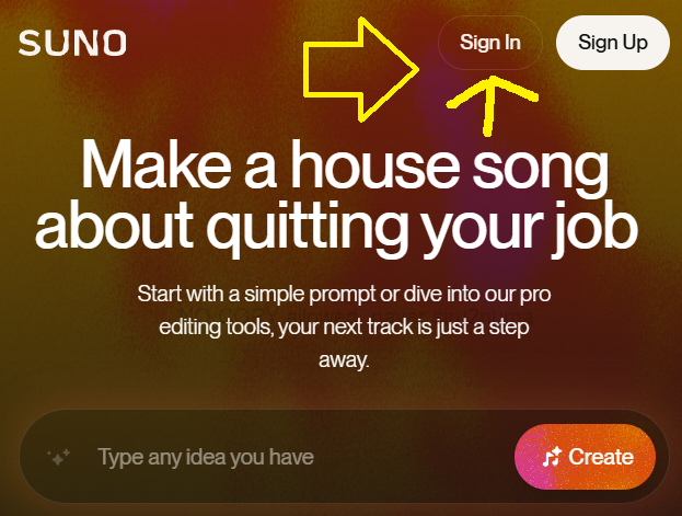 이제 suno 사이트에 접속하신 후 Sign In을 눌러주세요.