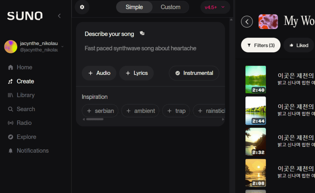 이제 suno에 로그인되셨으니 자유롭게 이용해보시면 좋을 것 같아요.