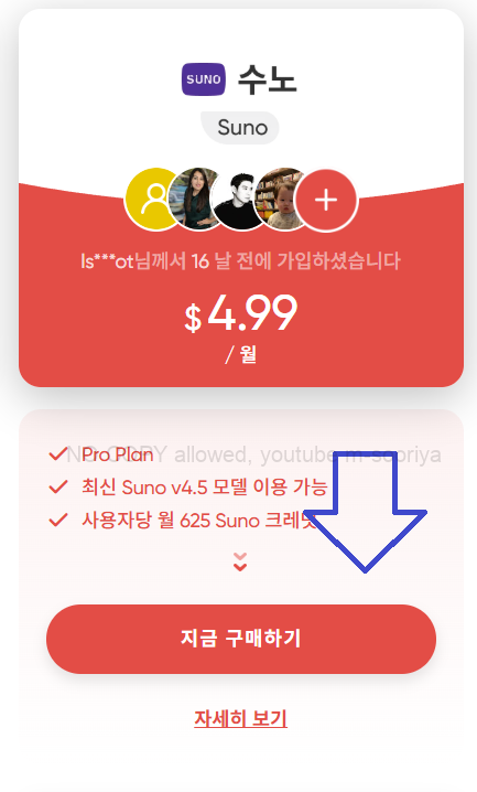 홈화면에서 [수노]를 찾아 [지금 구매하기] 버튼을 눌러주시면 됩니다.